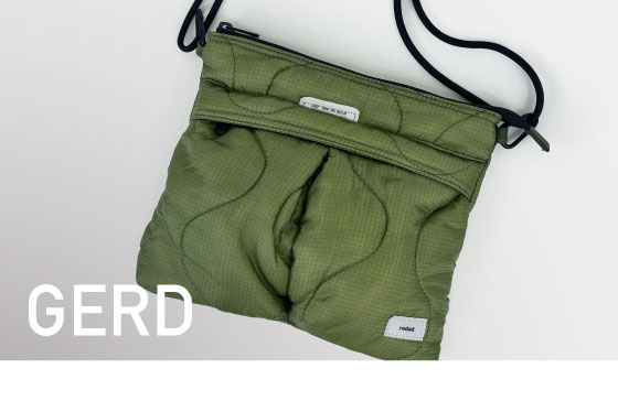 絶妙なカラーリングが特徴のシリーズで、洗練されたスッキリとしたデザインで、女性にはもちろんミニマリストにも好まれるプロダクトを目指しました。シンプルさの中に無駄を省いた機能性を加えています。とても軽いナイロン素材は弱撥水素材で、やわらかいルックスが特徴です。